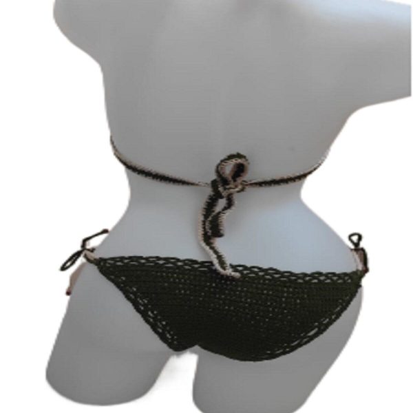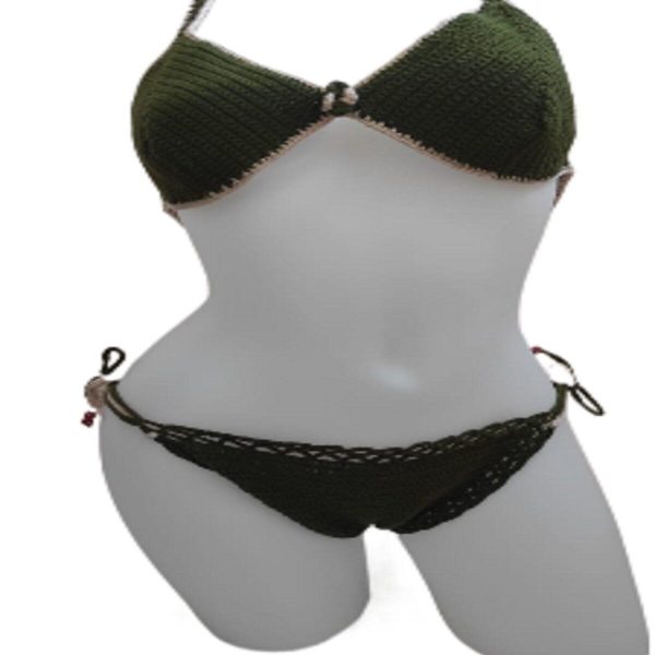 Yeşil Rengi Kenarları Krem Kadın El Örgüsü İç Çamaşır Bikini Takımı