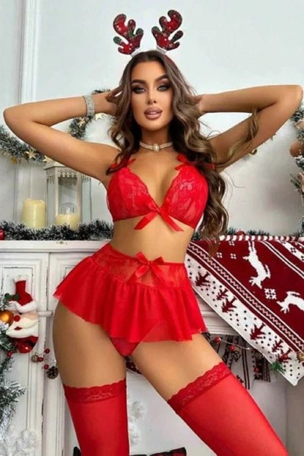 Candy women Yüksek Bel Etekli Yılbaşı Noel Fantazi İç Giyim Yılbaşı Erotik Takım-16048- Ürün İçeriği: Sütyen,String Etek,Çorap vardır, 90% Polyester %10 Elastan Malzemeden Üretilmiştir.; ; Ürünümüz İnce Tül Ve Dantelden Üretilmiştir Yerli Malzemeler Kullanılmış Olup Üretiminde Sağlığa Zararlı Herhangi Bir Materyal Kullanılmamıştır.; ; Özel Tasarımı Ve Esnek Yapısından Dolayı En Çok Tercih Edilen Ürünlerimiz Arasında Yer Almaktadır.; ; Siparişiniz sizlere Gizli kargo olarak teslim edilmektedir.; ; Paket açılmadan ürünün içeriğinin görünmesi imkansızdır.; ; Sıcak dakikalar içinde çokca tercih edilir.; ; Size ve Partnerinize Keyifli Dakikalar Yaşatacak.; ; Hijyen Bandı Açılmış Ve Ten İle Teması Bulunan Ürünlerin İadesi Mümkün Değildir.